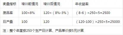 为了更直观地展示培训成本收益法。下面以某电子生产企业为例,进行培训成本和收益分析。