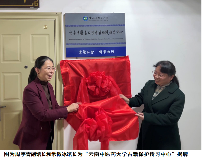 结班仪式后,省图书馆和云南中医药大学图书馆领导为“云南中医药大学古籍保护传习中心”“云南中医药大学古籍修复工作室”揭牌并参观了云南中医药大学古籍书库,省图书馆领导、专家对云南中医药大学古籍存放、整理和数字化建设以及基础设施、恒温恒湿设备建设提出了工作建议。