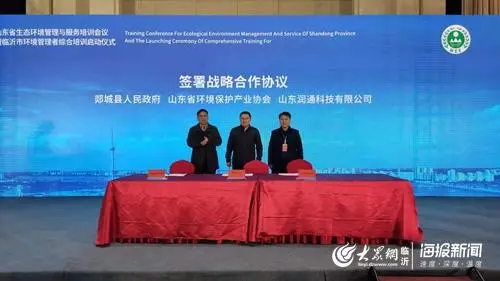 会议现场还举办了临沂市环境综合服务签约仪式,郯城县人民政府、山东省环境保护产业协会、山东润通科技有限公司签署战略合作协议;中节能(临沂)环保能源有限公司、中节能(郯城)环保能源有限公司分别与山东省环境保护产业协会、山东润通科技有限公司签署战略合作协议。