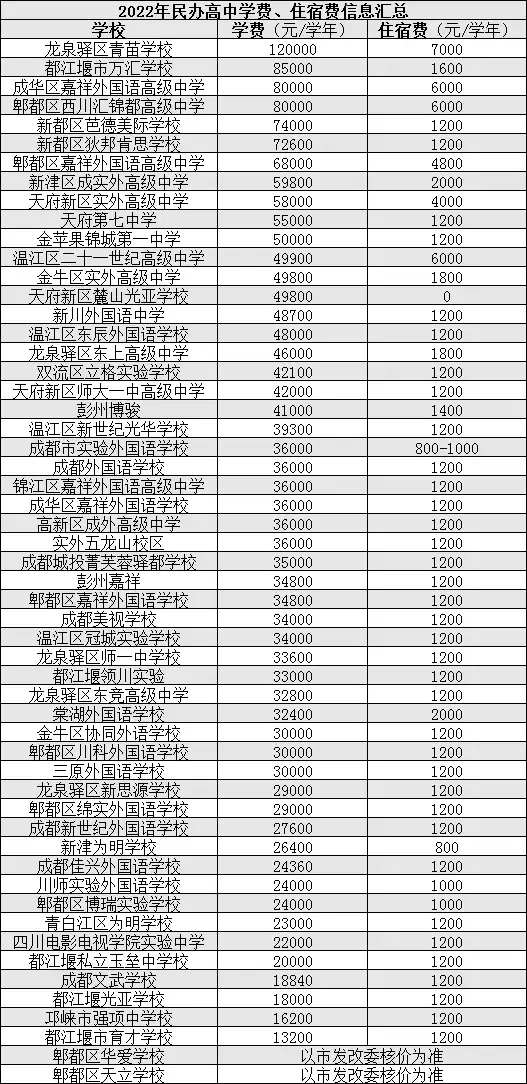 成都“5+2”区大部分高中属于省级示范高中,学费、住宿费都按照这一标准执行。