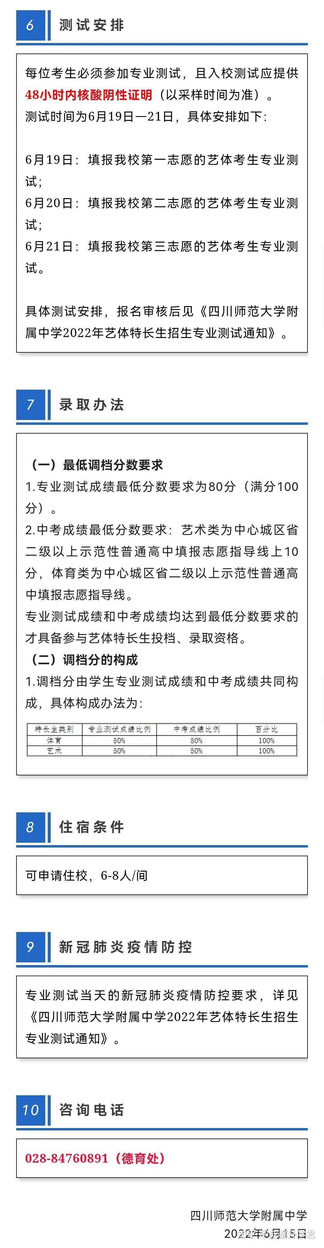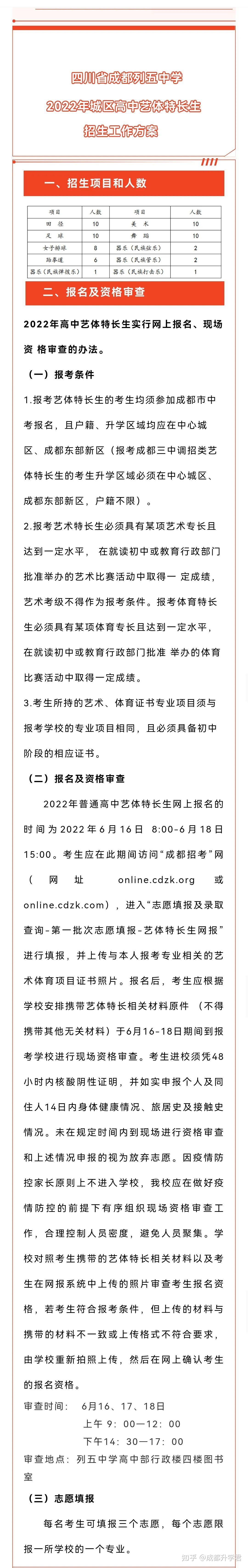 根据成招考委[2022]20号文件精神,结合我校实际情况,特制定成都树德中学2022年高中艺体特长生招生办法。