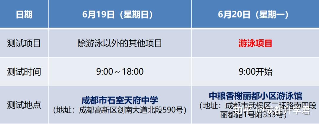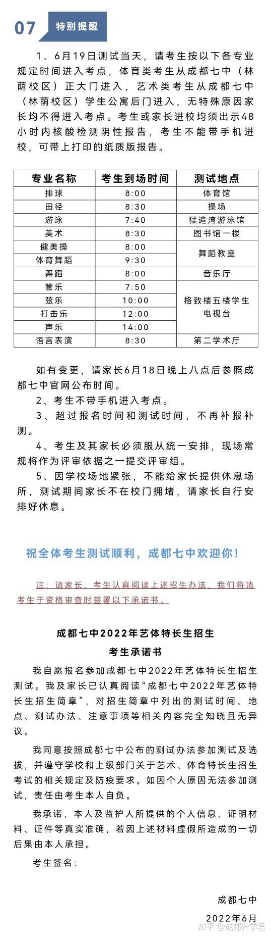 1.6月19日到校参加专业测试的考生请于早上8:40从成都石室天府中学北门(交子大道侧)进入考点。进校须凭 48 小时内核酸阴性证明,出示健康码、行程码并如实申报个人及同住人 14 日内身体健康情况、旅居史及接触史情况,体温测量正常后方能进入考点,家长不进入学校。6月20日游泳项目测试按照上述相关要求到达指定地点。