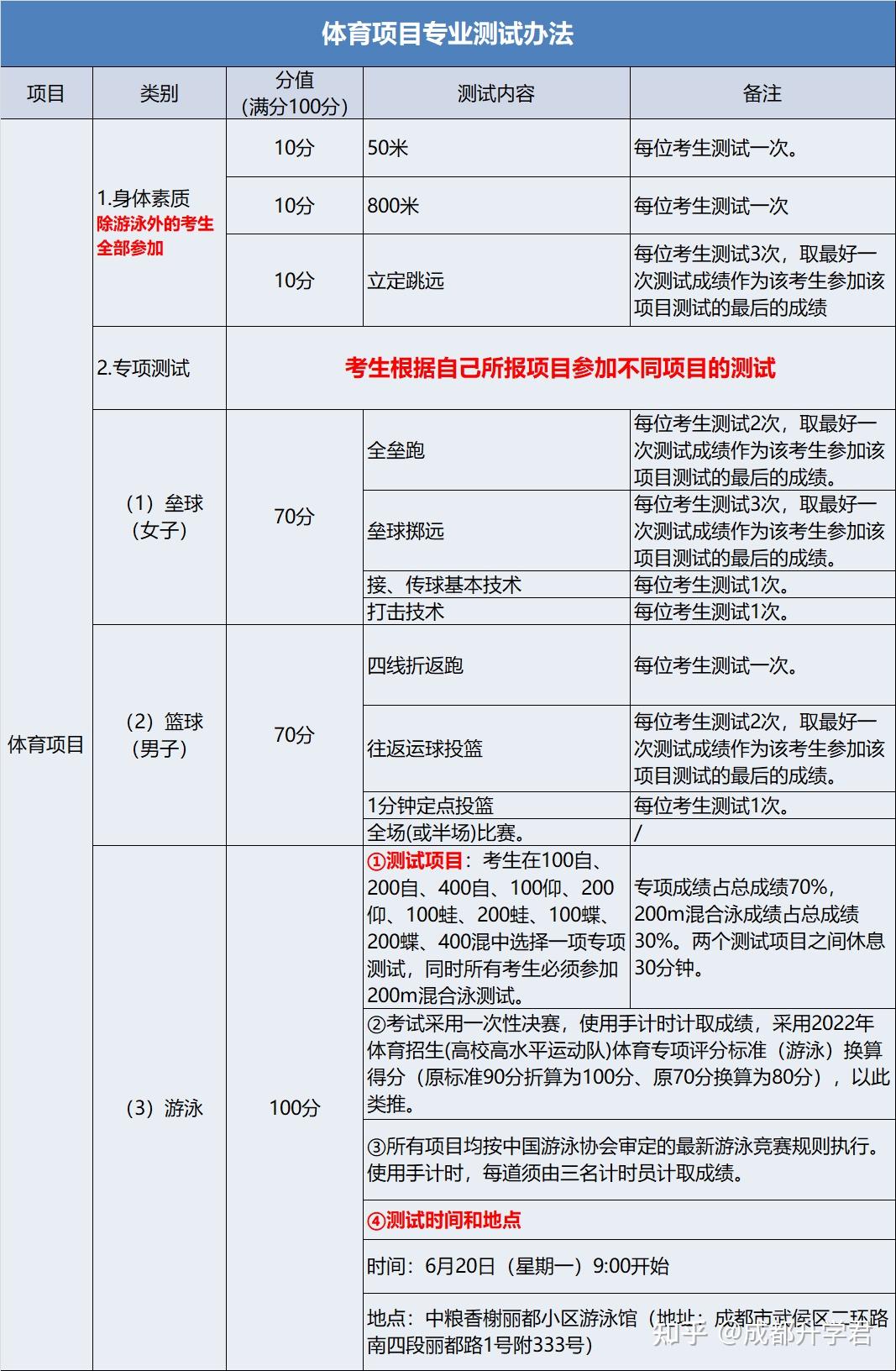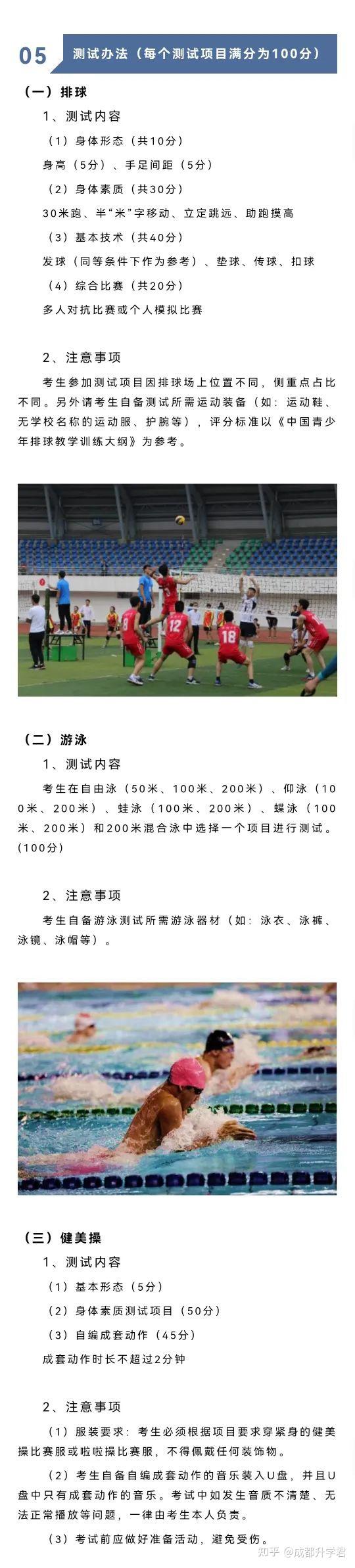 游泳:总分100分。(其中80分为专项测试成绩,20分为技评和选材综合测评成绩)