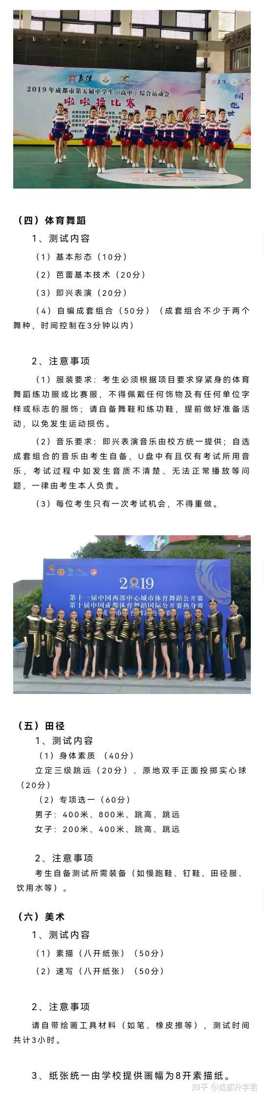 成都市第二十中学校2022年高中艺体特长生测试办法
