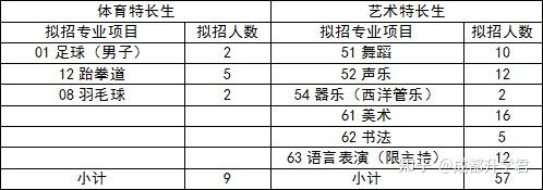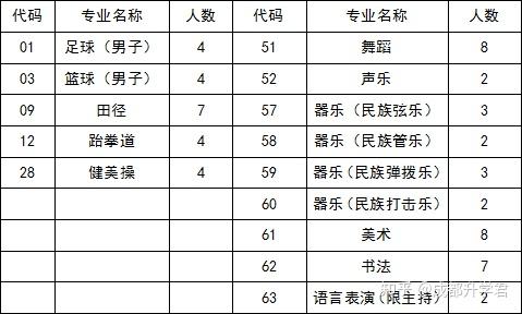 备注:根据学校艺体团队建设的需求,对部分项目招生类别进行细化。