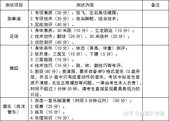 报考艺体特长生的考生均须参加成都市中考报名,且户籍、升学区域均应在中心城区、成都东部新区。