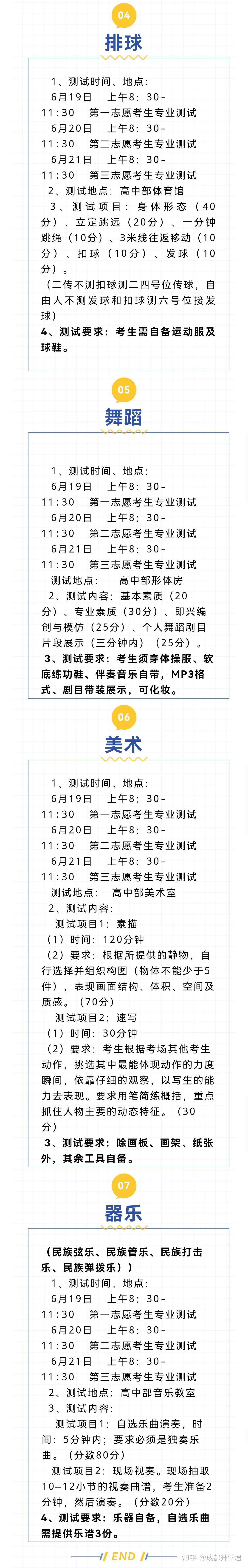 以上时间为填报高中学校艺体特长生第一志愿的考生专业测试时间。其它志愿测试时间另行通知。