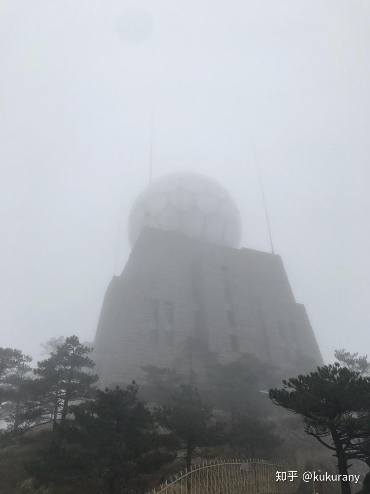 在白云宾馆路边休息区坐下休息,此时是微微小雨,因为休息区有小商店、饭馆、洗手间,游客在这里聚集了不少。我吃了在山下买的面包,到1:45再起身继续走。这里有天海站观光缆车,是看西海大峡谷的,但考虑到雾大,看不到风景,就不去了。又是经过一大段爬坡,到2:05到了光明顶,这里是个气象站,有一座小楼,顶上有个足球一样的装置,雾比较浓的时候还以为是佛像...这里竟然有免费wifi“黄山风景区”,凭手机号收验证码登录,还挺好用的。黄山景区内山上、山下手机本来信号也都不错