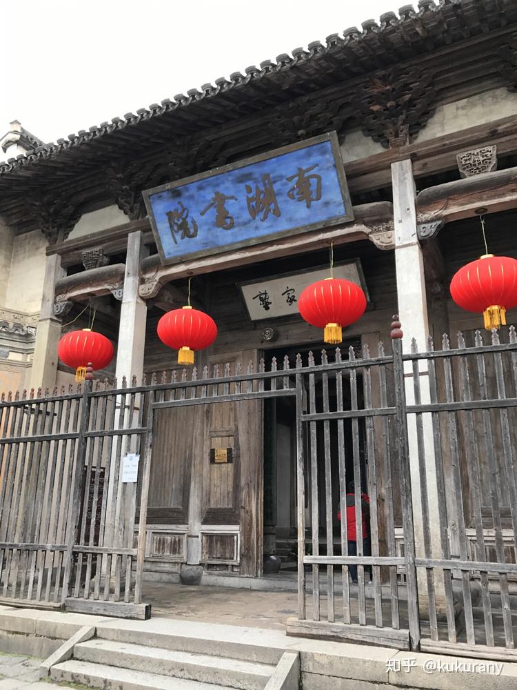 跟着讲解员先去了南湖书院。此书院位于南湖的北畔,原是明末兴建的六座私塾,称“倚湖六院”,清嘉庆十九年(1814年)合并重建为“以文家塾”,又名“南湖书院”。重建后的书院具有传统徽派风格的古书院,由志道堂、文昌阁、启蒙阁、会文阁、望湖楼和祗园等六部分组成,占地约6660平方米。一湖碧水位于书院前,连栋楼舍接着书院,黛瓦粉墙与碧水蓝天交相辉映。书院里的志道堂是讲学的地方;文昌阁供奉孔子牌位,学生在这里对孔子瞻仰膜拜;会文阁为学生读四书五经的场所;启蒙阁是启蒙读书之处;望湖楼是闲时观景休息之地;祗园是内苑。
