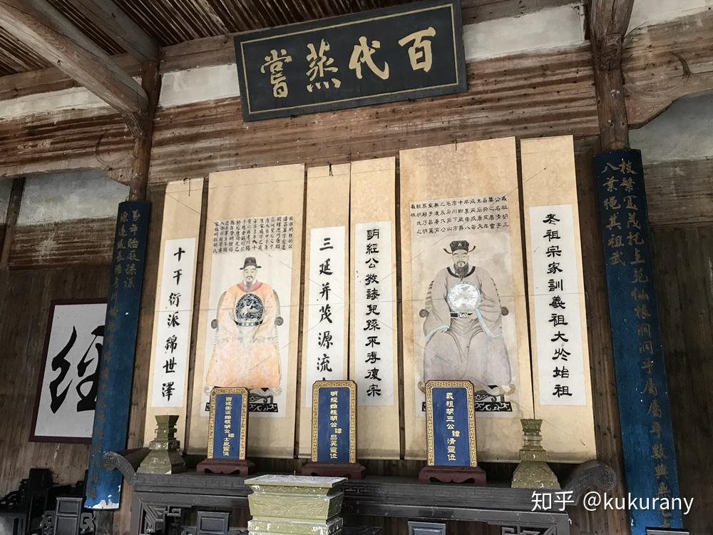 从这一带走回主街,到主街北边的追慕堂。这也是一处祠堂,建于清朝乾隆五十九年(1794年),面积351平方米。是明经胡氏廿四世祖胡贯三,追思慕念祖父丙培公、父亲应海公一生崇文尚义、乐善好施而建。大门看起来和敬爱堂非常接近,走进堂内,屏风书写了追溯至唐朝皇室的家族历史,有唐太宗李世民的功臣图像,也供奉着李世民的塑像。(但用红布遮起来了。)