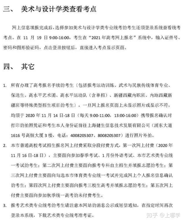 本市普通高校艺体类专业统一考试采取系统统一分配考点的方式。报名参加美术与设计学类专业统考并完成网上付费的考生须于2020年11月19日9:00-16:00登录“上海招考热线”网站,查看系统分配考点情况。