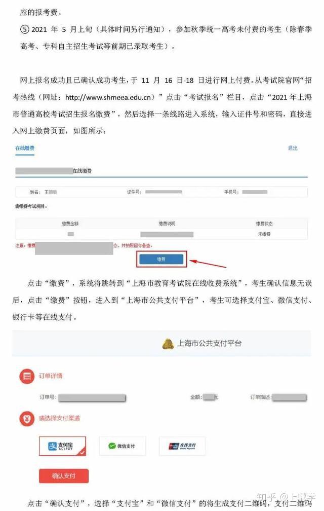 根据考试项目安排,网上付费采取分段付费方式。第一次网上付费安排在2020年11月16日-18日,主要针对勾选参加春季考试、1月份外语考试、艺术类专业统一考试的考生。考生在规定时间内登录“上海招考热线”网站完成付费。