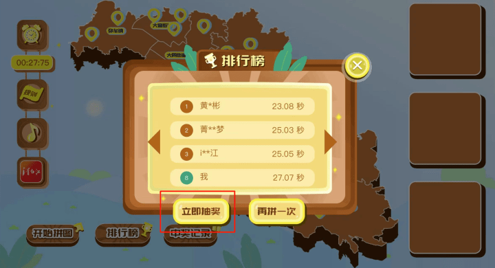 (2)将游戏界面最右侧罗列的青白江近十年新增地标,拖到青白江地图中相对应的地理位置,正确后拖下一张,全部拖完成功后参与抽奖。