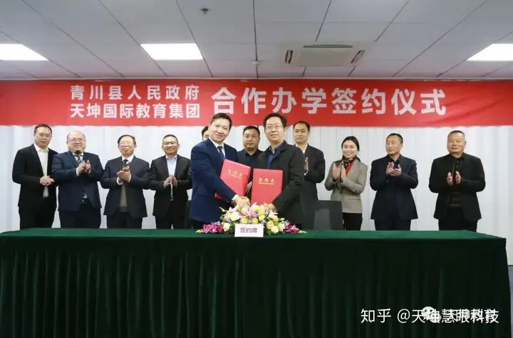 2017年,青川县人民政府与天坤国际在上海签订合作办学协议,并采取PPP合作、集团化办学的模式,立足市场需求,科学设置专业,在数控技术应用、汽车运用与维修、旅游服务与管理、计算机应用、电子技术应用、会计等专业的基础上,增加了高级乘务、手机与平板电脑维修技术、工业自动化机器人技术三个特色专业方向,让学生学到最前沿的技术、练就最前沿的技能、获得最好的就业岗位、实现可观的工资收入、为社会创造更多的贡献。经过三年来的合作办学,学校办学理念更加先进,师资队伍更有活力、日常管理更加精细、学生发展更加多元化。秉承着目标招生就是招工,毕业立即就业。教学质量过硬,高考升学显著。强化专业拓展,多点多极融合。特色课程丰富,青春活力彰显准军事化管理,培育职业精神。