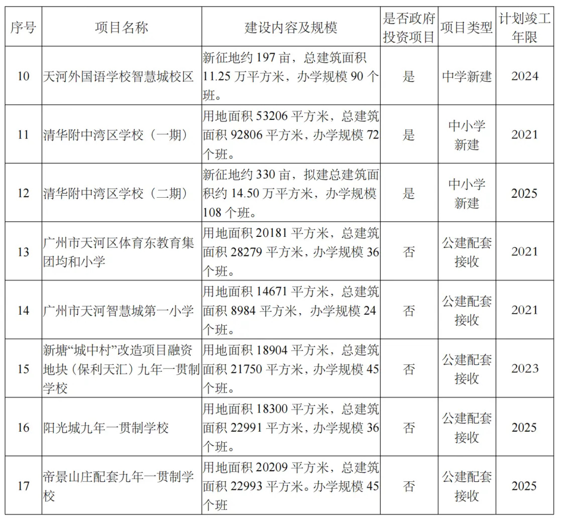 附表:广州市天河区教育事业发展“十四五”规划重点建设项目汇总表