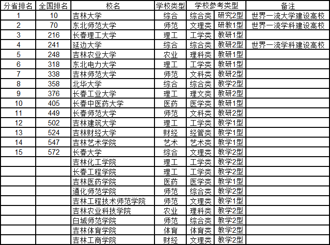 2020年评价吉林省24所普通本科大学。吉林省大学教师学术水平0.8116,全国第15名,教师绩效0.8572,全国第15名。