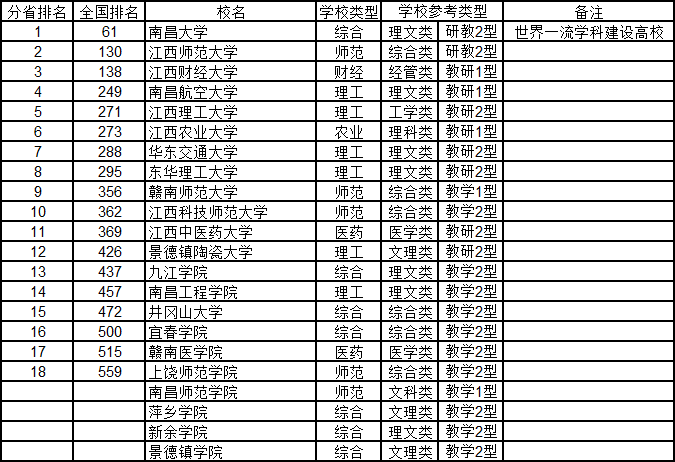 2020年评价江西省22所普通本科大学。江西省大学教师学术水平0.4606,全国第20名,教师绩效0.6169,全国第20名。