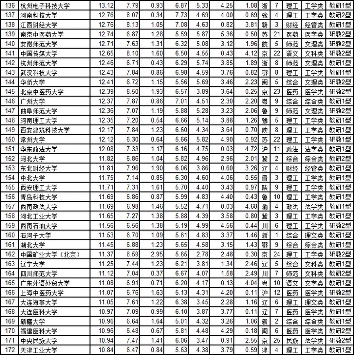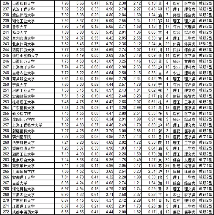 2020年评价湖北省34所普通本科大学。湖北省大学教师学术水平1.2404,全国第6名,教师绩效1.1948,全国第6名。