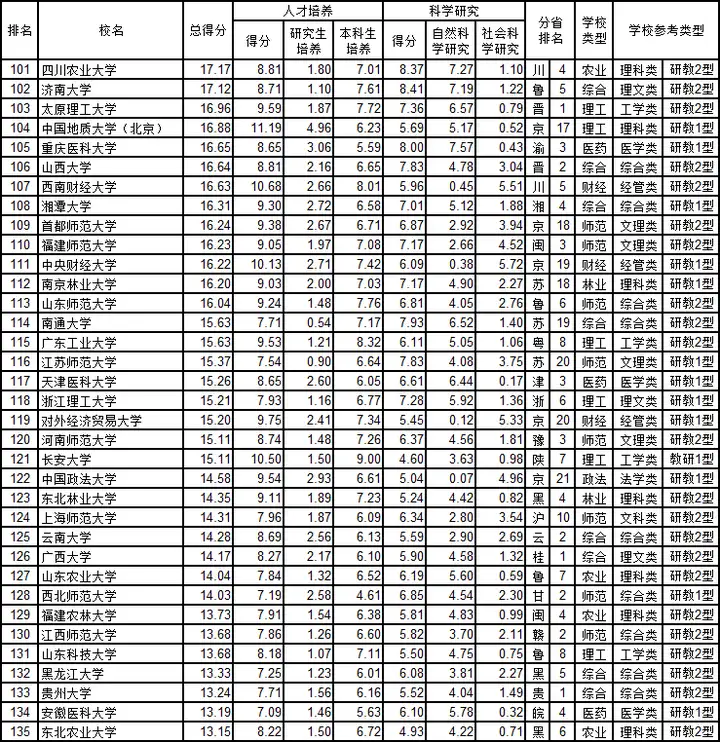 2020年评价四川省33所普通本科大学。四川省大学教师学术水平0.8189,全国第14名,教师绩效0.8449,全国第16名。