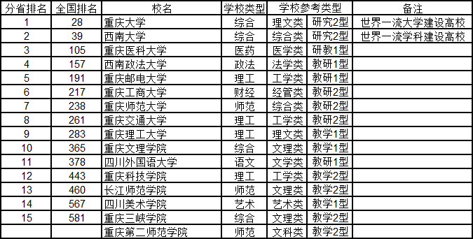 2020年评价重庆市16所普通本科大学。重庆市大学教师学术水平0.9929,全国第9名,教师绩效0.9821,全国第8名。