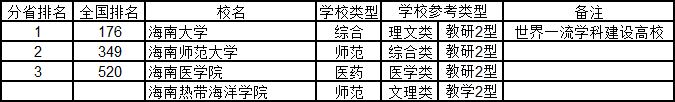 2020年评价海南省4所普通本科大学。海南省大学教师学术水平0.3633,全国第25名,教师绩效0.5728,全国第23名。