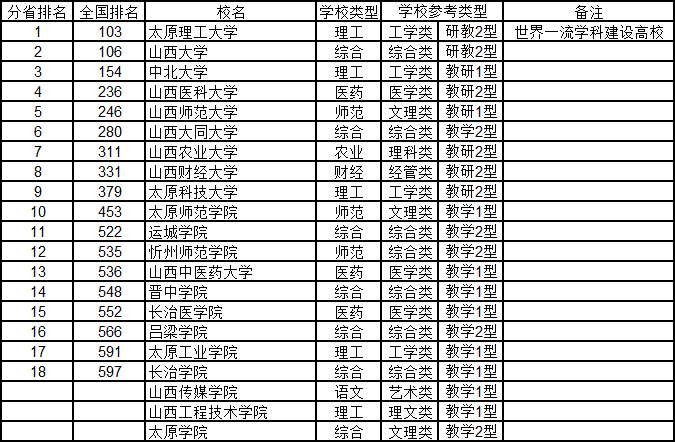 2020年评价山西省21所普通本科大学。山西省大学教师学术水平0.4398,全国第22名,教师绩效0.6278,全国第19名。