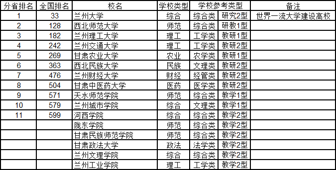 2020年评价甘肃省16所普通本科大学。甘肃省大学教师学术水平0.7867,全国第16名,教师绩效0.7965,全国第17名。