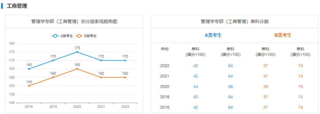 学历认可。毕业可以获得研究生学历和硕士学位(毕业拿双证); 相比较其他考研专业,管理类专业硕士初试只考两门---管理类综合能力满分200分,英语二满分100分; 从专业硕士近几年的分数线来看:管理类专硕七个专业的国家线相较其他专硕分数线是比较低的。下面为广大考生梳理出管理类专硕的基本介绍以及近五年考研国家线,以供参考。