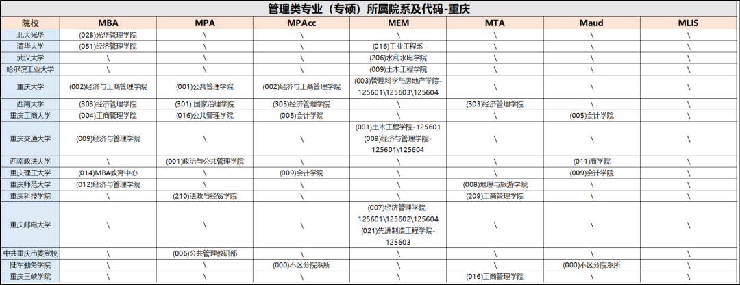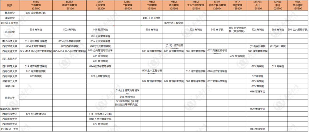 附:川渝地区管理类专业招生院系代码