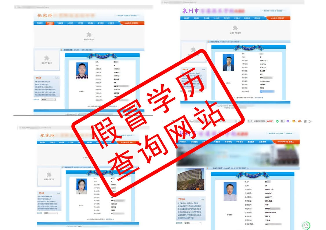 为避免露馅,张某、易某等人伙同犯罪嫌疑人印某,仿冒毕业证学校官方网站,搭建假学校网站,并在仿冒网站上录入制证学员的身份证、照片等配套信息,以备查询。