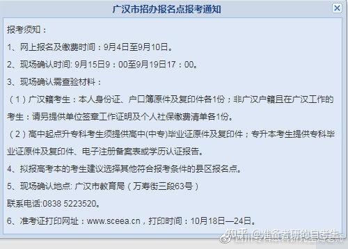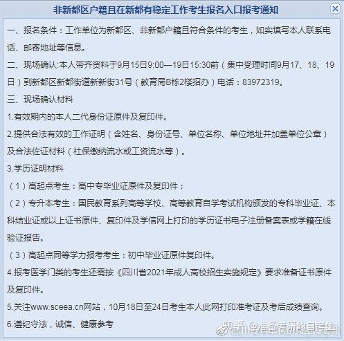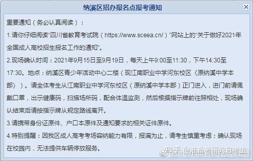 1.网上报名和网上缴费时间:9月1日9:00至9月7日17:00。考生须在规定报名时间内登录四川省教育考试院官网(https://www.sceea.cn)或直接登录所在市(州)招生考试机构公布的成人高考报名网站,按照网站提示和要求如实、认真填写本人报名信息并完成缴费。未在规定时间内完成网上报名及缴费手续的责任自负,逾期不再补报。