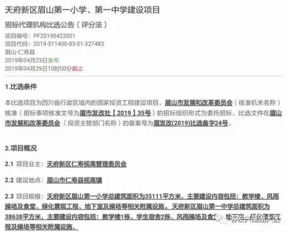 项目总投资约20亿元人民币,主要建设天府新区眉山嘉祥外国语学校(涵盖幼儿教育、K12教育)及配套商住设施。