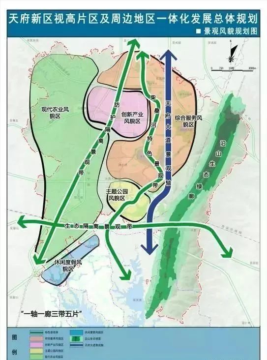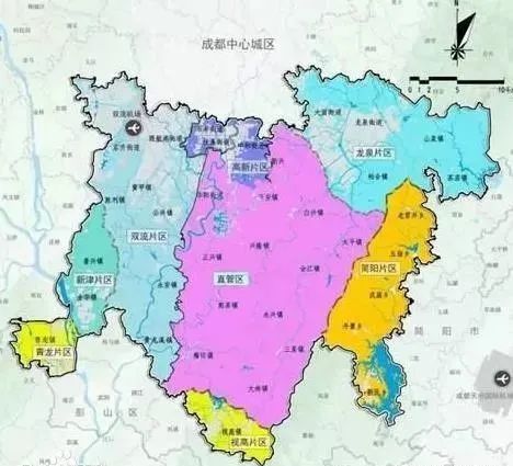 主要包括了成都市管辖的成都天府新区(即天府新区成都直管区)以及成都高新区、双流区、龙泉驿区、新津县、简阳市的部分地区,和眉山市管辖的彭山区、视高片区及仁寿县部分地区,共涉及2市8区(县、市)38个乡镇和街道办事处,总面积1578平方公里。