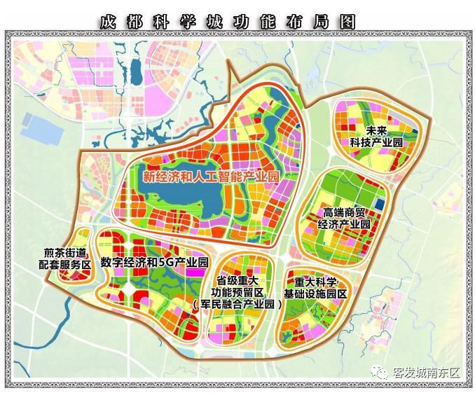 成都科学城:125平方公里,沿鹿溪河及周边进行布局,重点发展科研、新经济及“独角兽岛”等