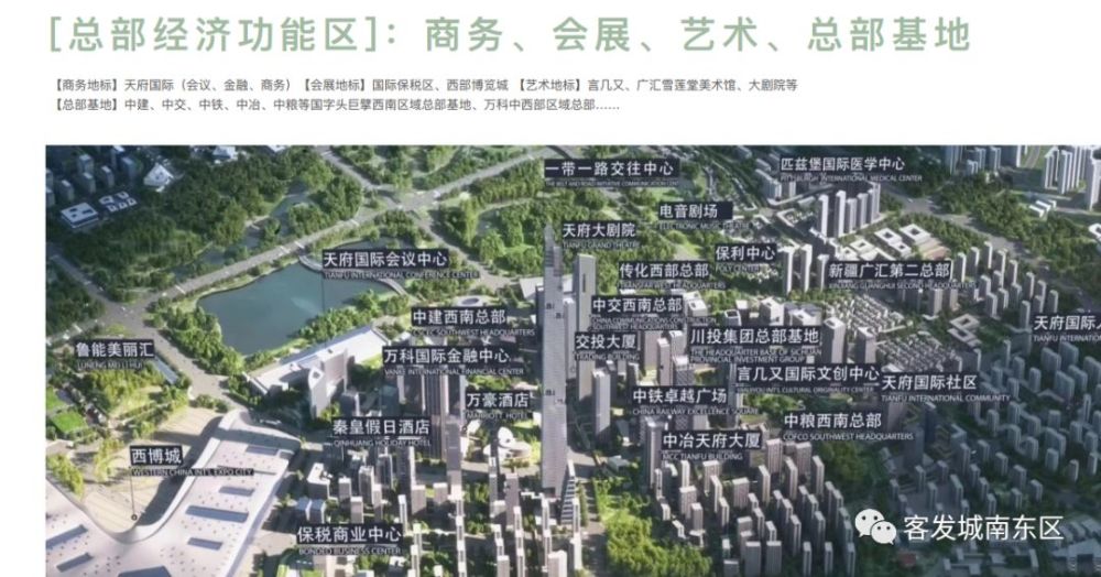 天府中心:43平方公里,重点发展高端商务、总部基地、行政政务等