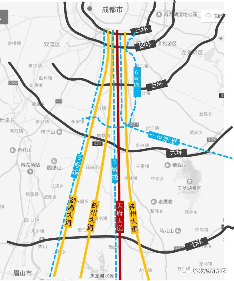 从地图上我们可以看到,几乎所有的主干道都是南北朝向,说明政府想把在天府新区工作的这一大批人全部输送到-南拓区域。进入城中心越来越挤,需要资格,房价贵且面积大,总价又高,所以只能向南,眉山天府新区,天府视高板块,交通便捷,并且不限购。所以将来的视高会成为百万人口聚集地!特别多的白领、上班族会在视高板块安家。