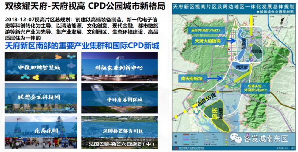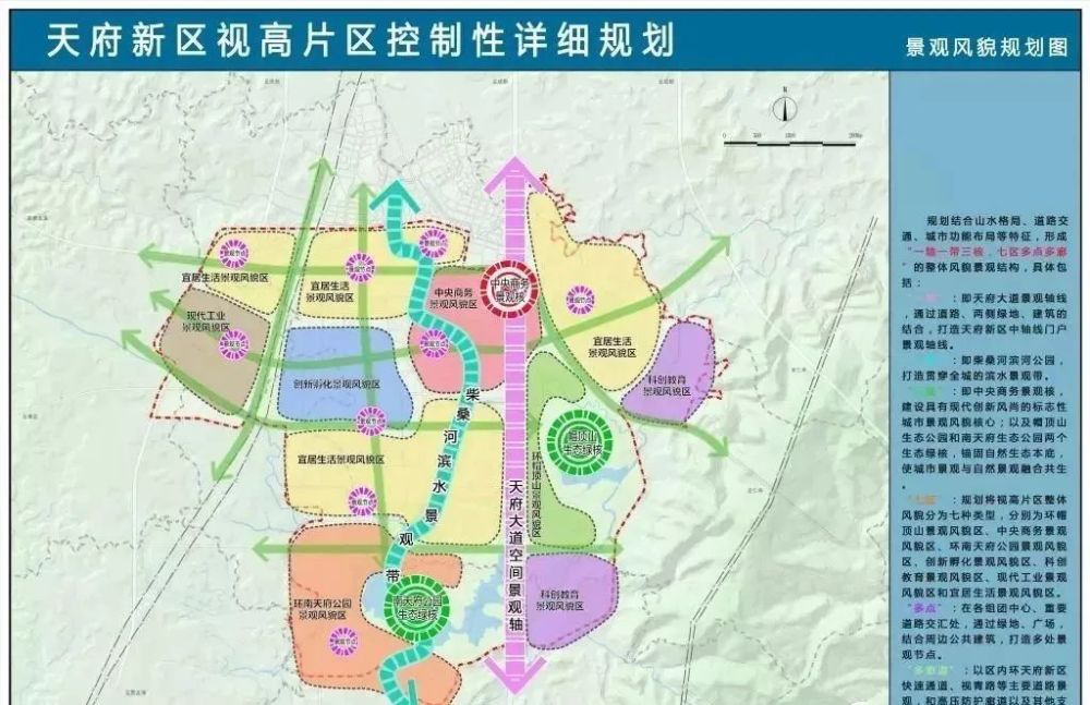 2018-12-07视高片区总规划:创建以高端装备制造、新一代电子信息等科创转化为主导、以清洁能源、文化创意、现代金融、都市微旅游等新兴产业为先导、集产业发展,文创园区,生态环境建设,高品质居住为一体的天府新区南部的重要产业集群和国际CPD新城。