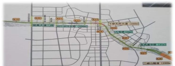 环天府新区快速通道起于青龙镇工业大道,止于观寺镇接三岔湖旅游环线,全长48.65公里,总投资53.8亿元,建设工期24个月,“双向六车道+辅道+人行道”标准建设。