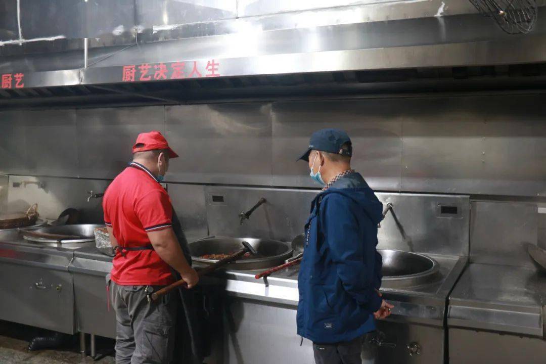为了让师生们吃得放心,检查组一行深入 学校食堂后厨、家长宾馆后厨、学校超市的仓库与面包房等地点,对所使用和售卖食品的合格证、进货单据 ,以及各地点消防用具等进行了严格、细致的检查。并要求各个部门员工严格落实每日岗前体温检查、手部清洁消毒等防护措施,对各地后厨的清洁与售卖食品的管理提出了要求。