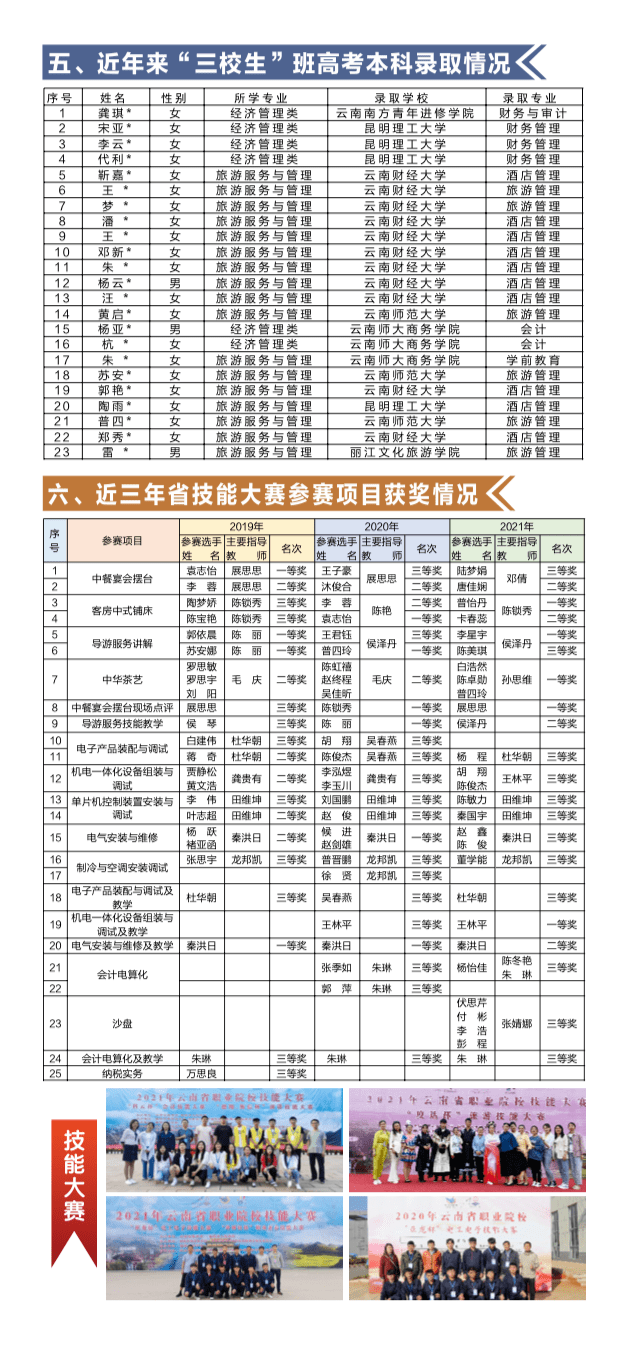 (5)2022年读完普通高中一、二年级的学生,可凭原就读学校转学证明(或普通高中学籍证明)及身份证转入我校综合高中相应年级就读,参加云南省的“三校生”高考。