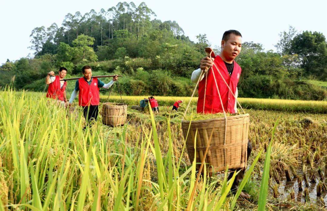 文字描述:8月18日,仁寿县宝飞镇东华村的党员干部正在帮助缺劳户收割水稻。他们顶着烈日,深入田间地头,帮助村民及时收割水稻,确保颗粒归仓。