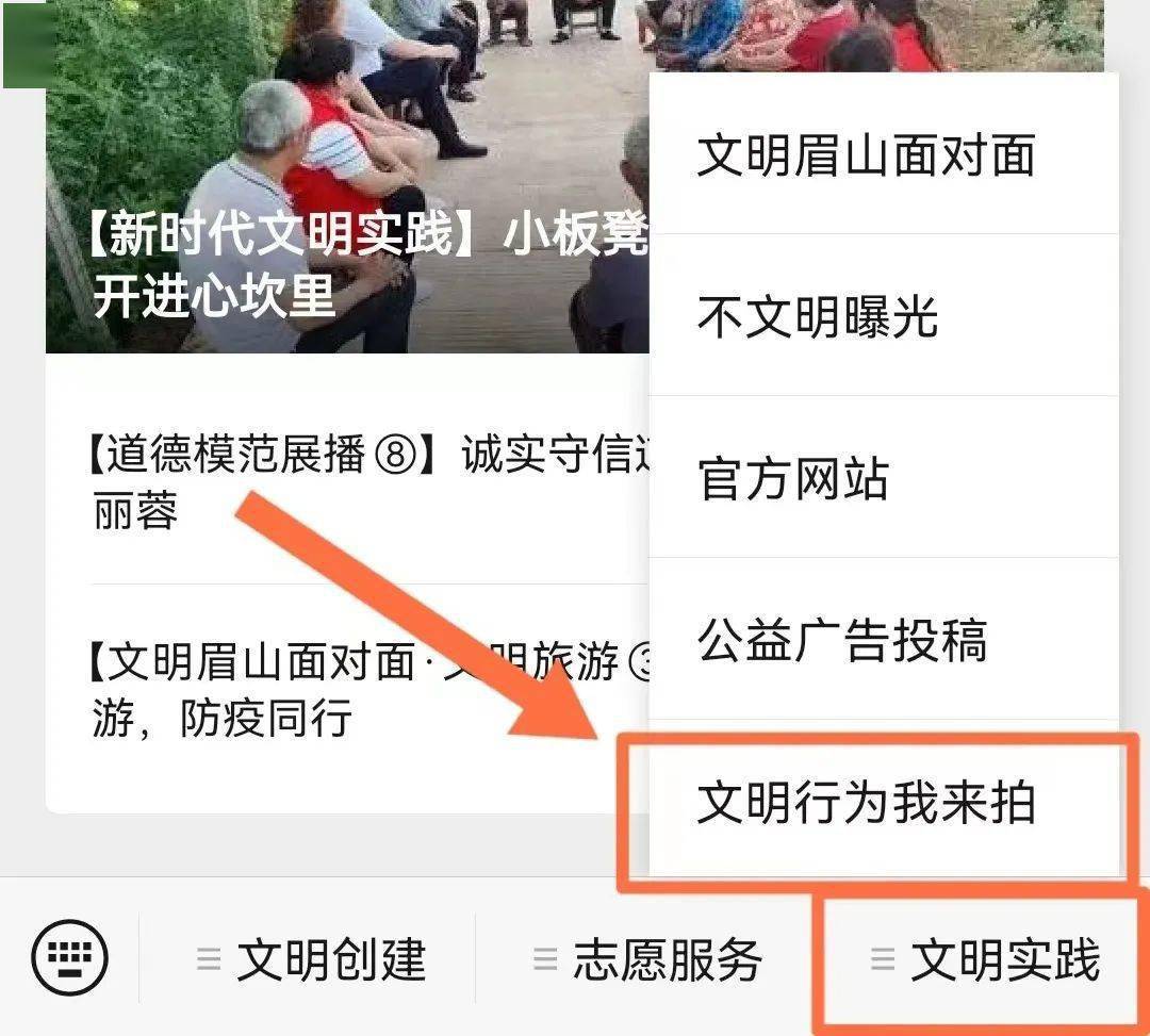 方式一:关注“文明眉山”官方微信公众号——点击“文明实践”菜单——进入“文明行为我来拍”子栏目——填写姓名、联系方式、征集内容、详情描述及需要上传的作品——点击提交——完成!