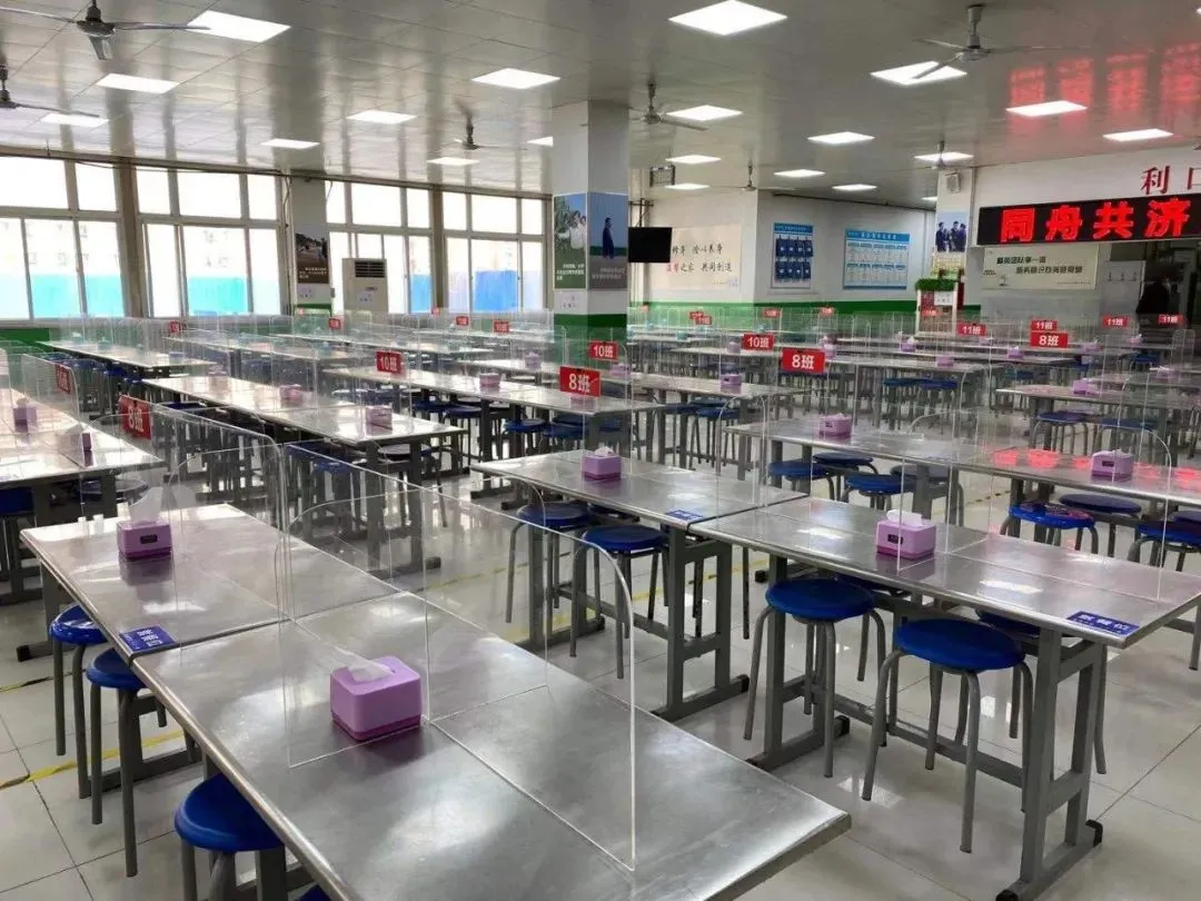 娄延果 :挡板是透明的,让同学互相能看到。但挡板要挡住,把每个人的就餐位置隔开,这样所有同学都在挡板前吃饭。