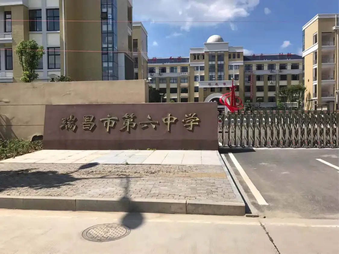 江西省瑞昌市第六中学,是由瑞昌市政府投资8084万元新建成的一所公办寄宿制初级中学,于2016年秋季投入使用。学校择址于瑞昌市大唐新区,正西4公里处立有程普墓,东北1公里处即“苍城古墩”旧址。校园占地面积83亩,总建筑面积29760平方米,绿化面积24246.1平方米,校内亭廊错落、林木葱郁、芳草竞艳,被誉为“花园式学校”。