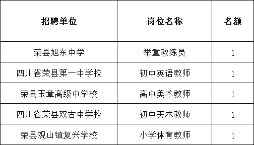 根据《事业单位人事管理条例》(国务院令第652号)、《关于印发四川省事业单位工作人员招聘工作试行办法的通知》(川人发〔2006〕9号)、《关于转发<关于进一步规范事业单位公开招聘工作的通知>的通知》(川人社发〔2011〕36号)、《关于切实做好我省优秀运动队退役运动员担任学校体育教练员有关工作的通知》(川教〔2021〕37号)、《关于印发<自贡市鼓励引导人才向基层流动十二条措施>的通知》(自人才〔2019〕4号)等规定,按照“公开、平等、竞争、择优”的原则,经研究,2022年荣县教育和体育系统事业单位将面向社会公开考核招聘教师5名,现将有关事项公告如下。