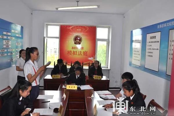 职业体验活动,学生模拟法庭。