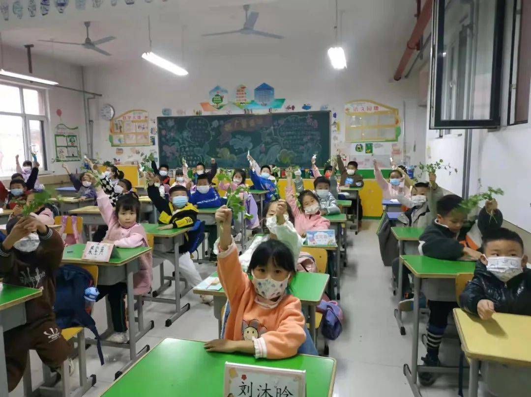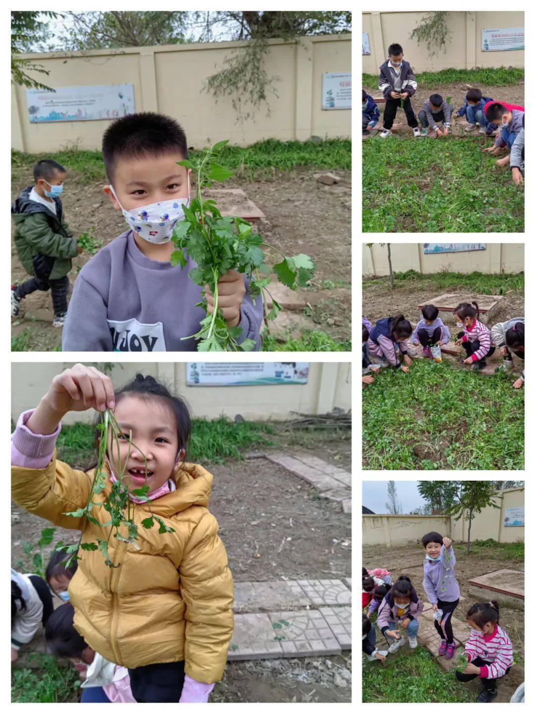 香菜甜甜的香气溢满了校园,温柔了低年级同学们的笑脸,看,同学们有的在弯腰择菜,挑选了最嫩的那颗;有的同学将香菜高高举起,分享着自己的劳动成果。同学们有秩序地拔香菜,绿色的校服与嫩绿的香菜融成了一幅希望的风景。