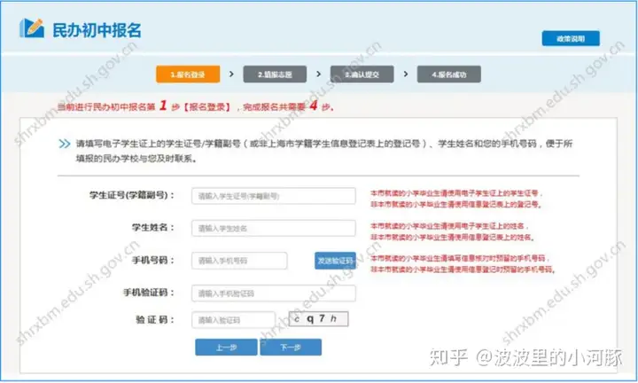 家长需输入孩子的学生证号/学籍副号、学生姓名、家长手机号码,获取手机验证码后,方可进入民办初中志愿填报流程。