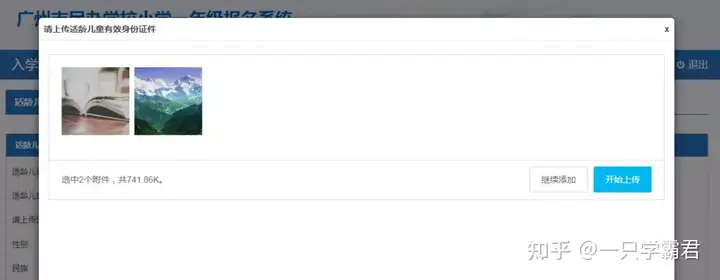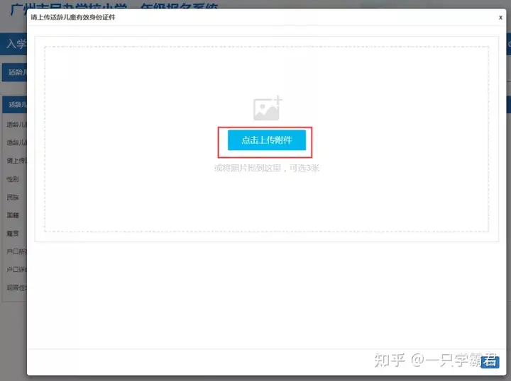 (2 )适龄儿童如使用护照或其他证件 登记基本信息,需要上传相关能证明身份及居住所在区的证明 资料 (可扫描或拍照上传,最多可上传 3 张附件)(如图 9~图 12)