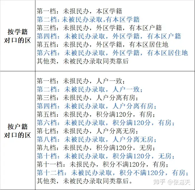 其它两种对口方式,在公办录取的时候,会按照一定顺序,将对口的家庭进行排位,划分为几档。